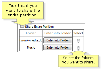 Select the folders you want to share or share the entire partition.
