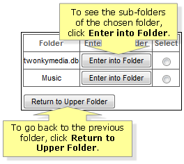To see sub-folders of the chosen folder, click Enter into folder. To go back, click Return to Upper Folder.