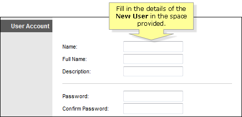 Enter the details of the New User in the space provided.
