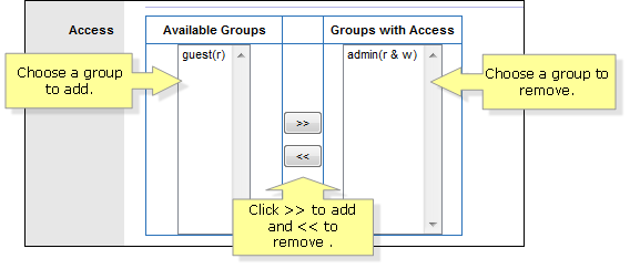 button to add to groups with access. Choose a group from Groups with Access and click the