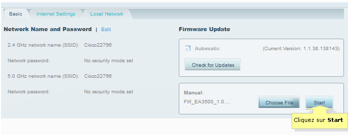 Nous sommes désolés d'apprendre que vous souhaitez rétrograder votre version vers notre logiciel classique (non-Linksys Smart Wi-Fi) sur votre routeur Linksys Smart Wi-Fi. Votre routeur Linksys Smart Wi-Fi doté avec le Compte Linksys Smart Wi-Fi vous offre une nouvelle expérience de connexion à la maison et un écosystème d'applications toujours plus grand. En rétrogradant la version de votre micrologiciel vers Cisco Connect 1.4, vous ne serez plus en mesure de profiter pleinement de votre nouveau routeur Linksys Smart Wi-Fi. Pour obtenir plus d'informations sur Linksys Smart Wi-Fi, veuillez consulter notre FAQ en cliquant ici.